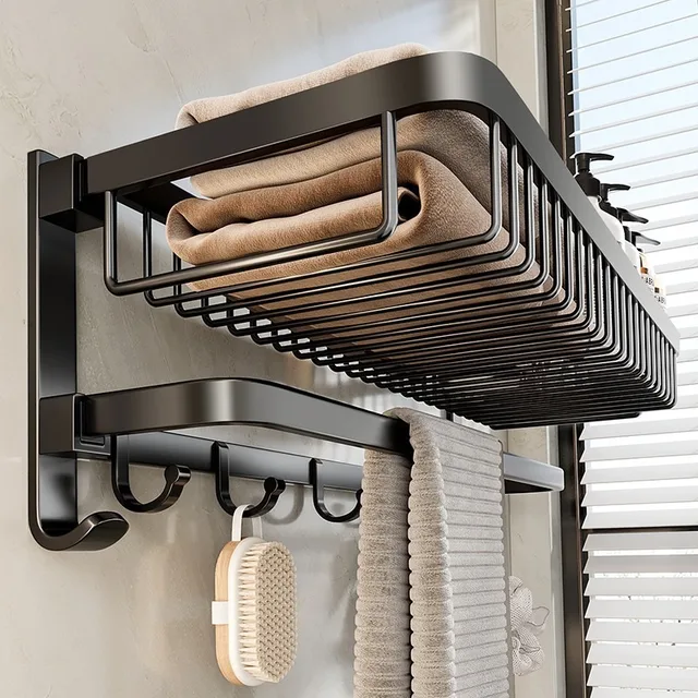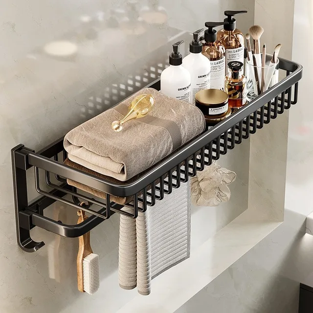 Set consists:- Multipurpose storage rack, Towel rack, hanging hooks, toilet brush, tissue box and 2 corner multipurpose racks
