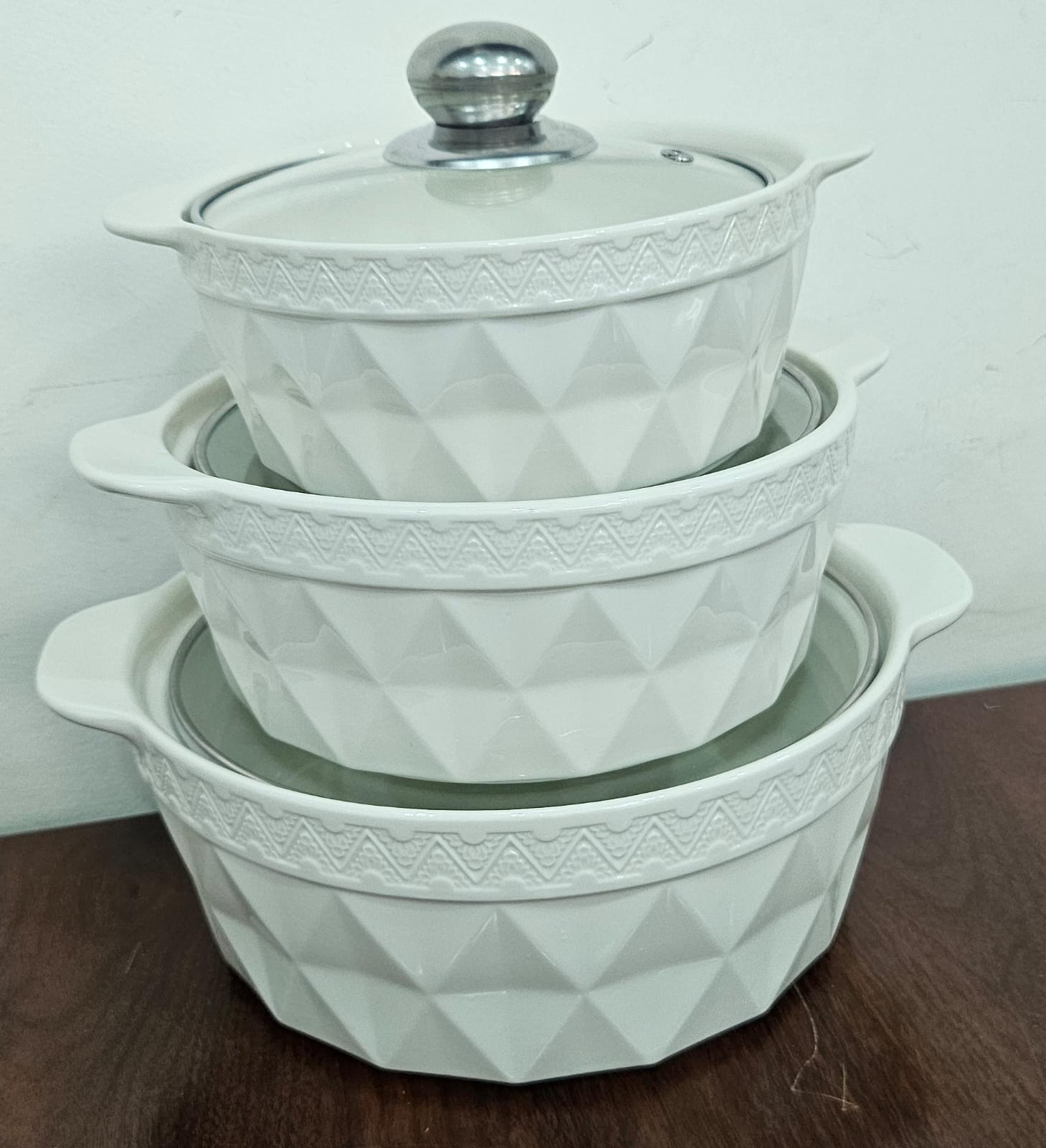 Elegant and versatile, our high-quality 3-in-1 ceramic serving dish set includes 3L, 2L, and 1L bowls—perfect for serving meals in style. Durable, heat-resistant, and ideal for everyday use or special occasions