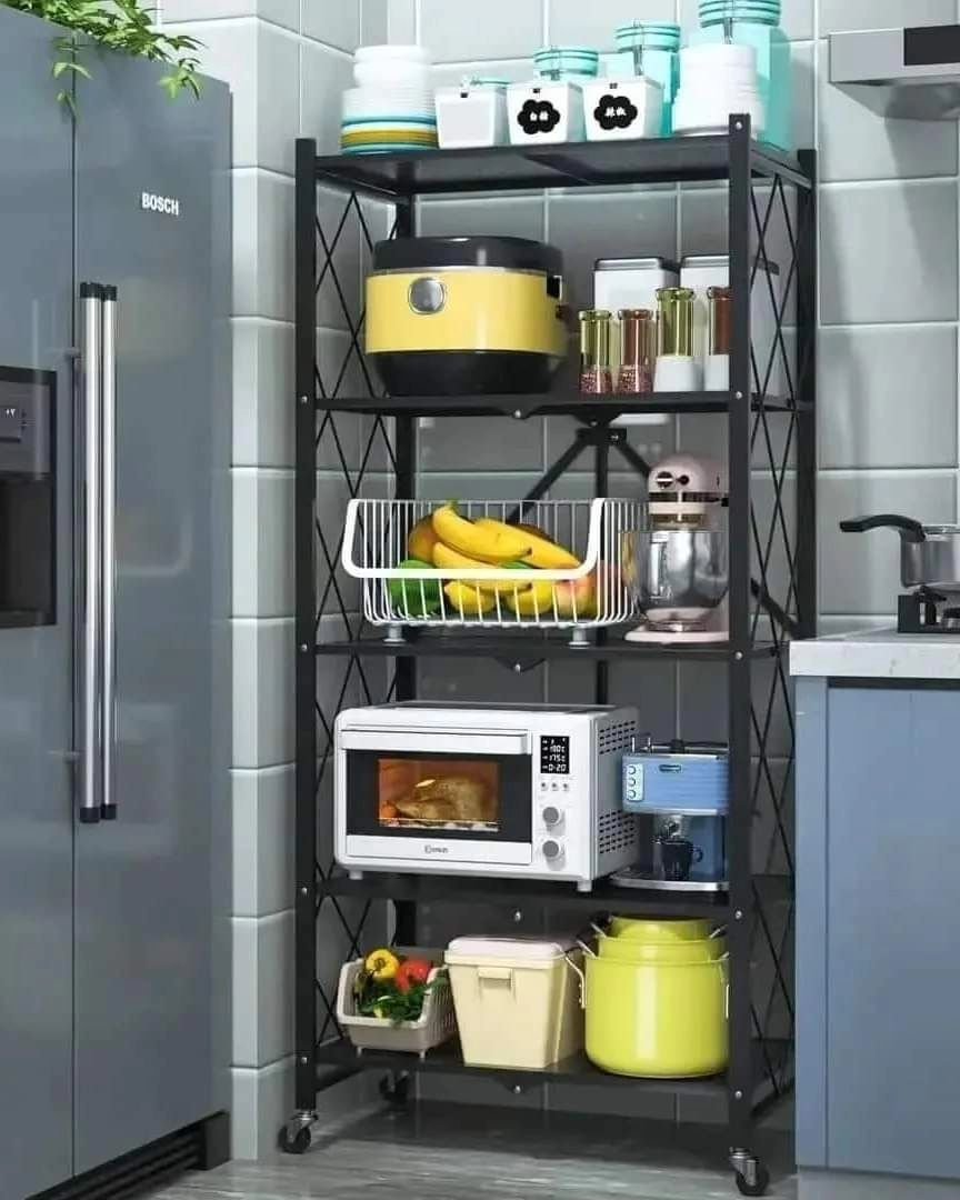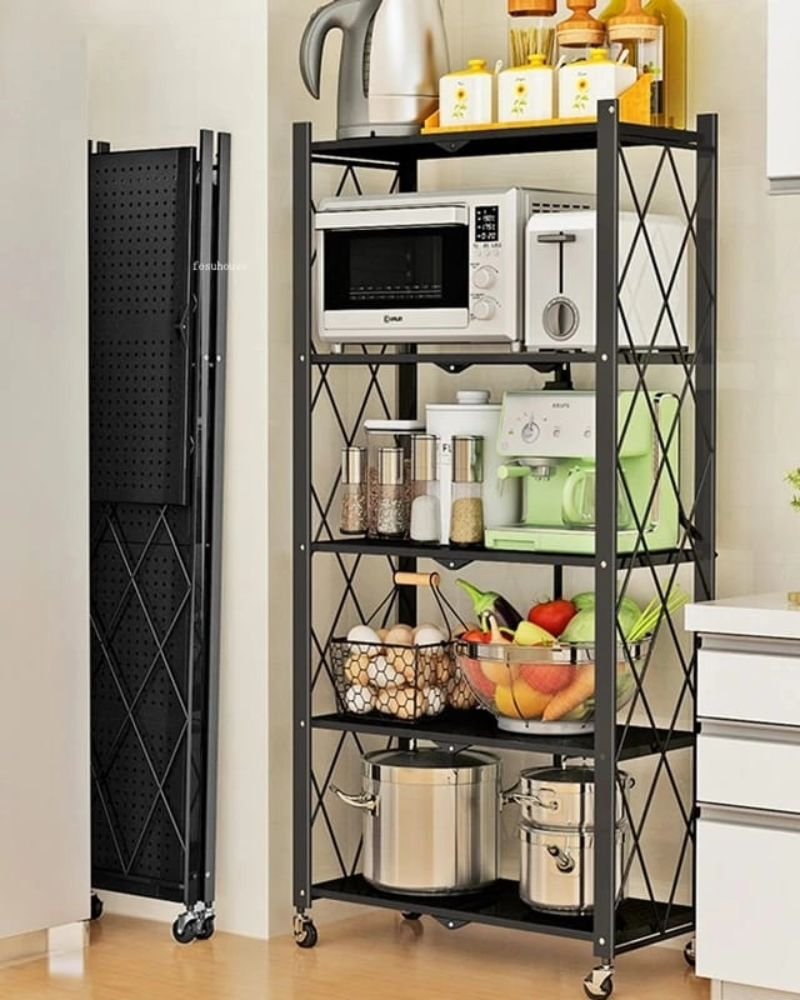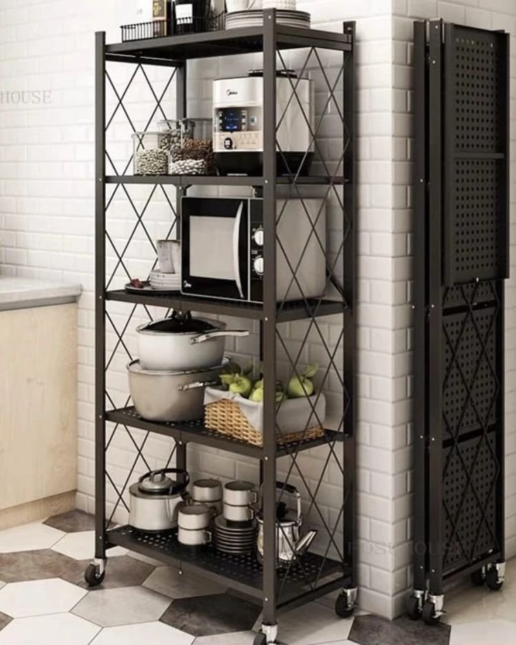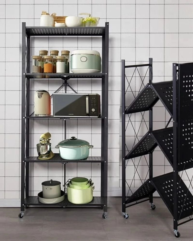 5-Tier Foldable Movable Metallic Storage Rack
