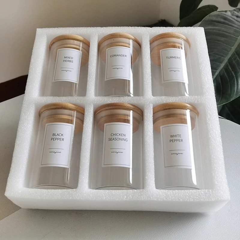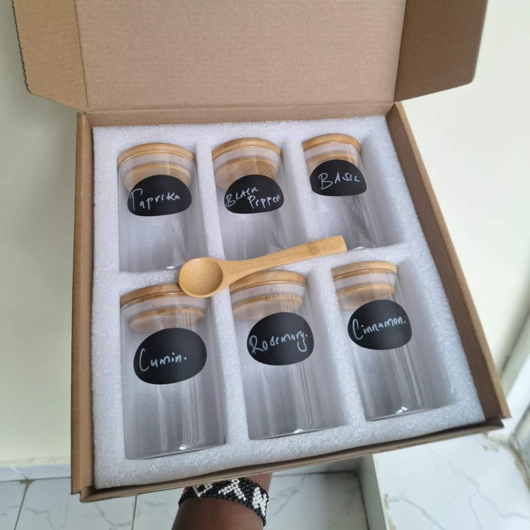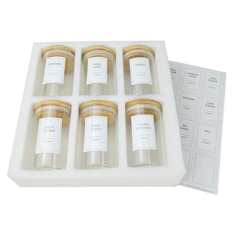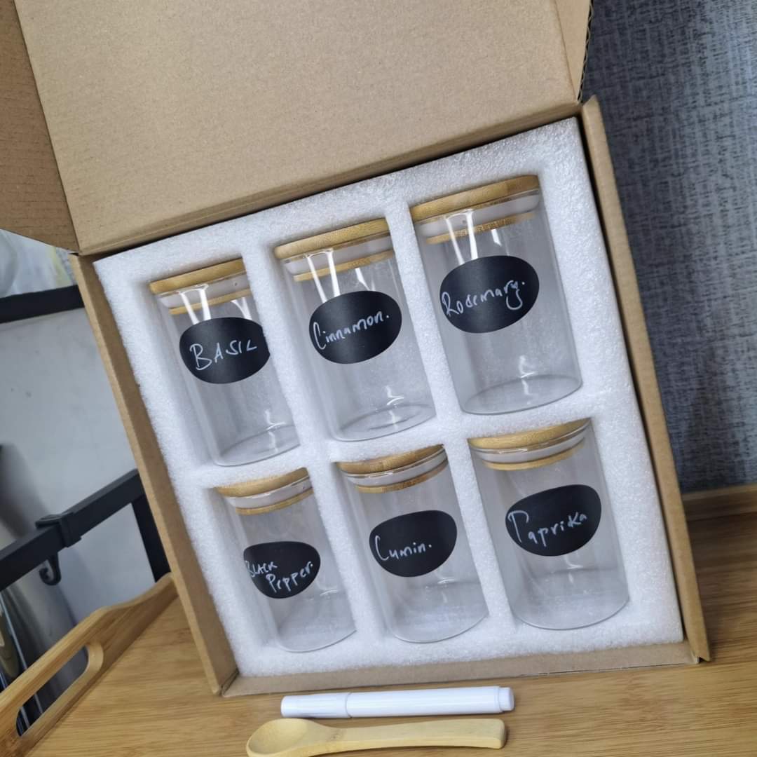 6-pack Round Glass Jars with Bamboo lid And Spoon