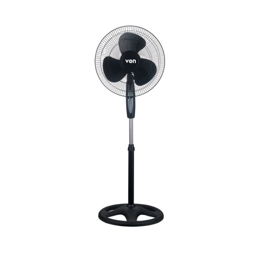 Enjoy powerful and reliable cooling with the VON VFS-6403-MJK 16" Stand Fan. Designed for comfort and efficiency, this fan features a durable 40W copper motor that delivers long-lasting performance and consistent airflow. Its 3 PP blades ensure powerful air circulation, keeping your home or office cool even on the hottest days.